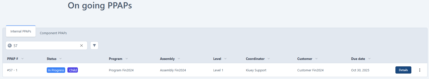 5. The newly created child PPAP can be found in the ongoing PPAPs list.