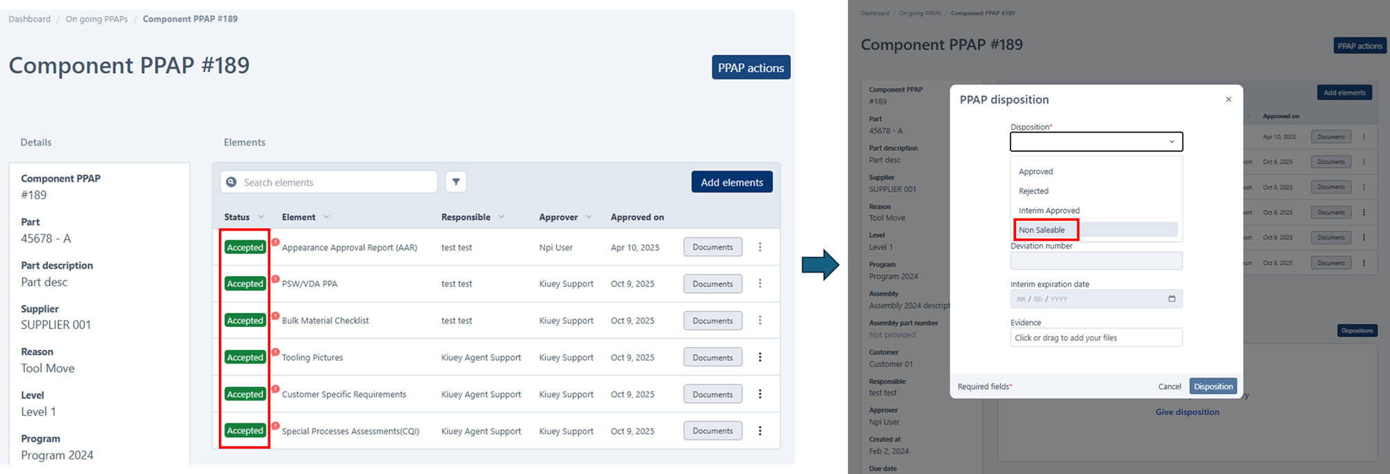 Note: This option will only become available once all PPAP elements have been marked as Accepted.