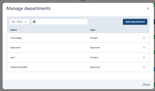 2. In the top-right corner, click the three-dot icon, then select Manage Departments. This will open the Manage Departments form.